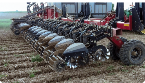 Last year, Watkins came up with a solution. He purchased a 60-foot Progressive toolbar and mounted 24 Yetter 2987 high speed Magnum fertilizer coulters on the bar to apply potassium and phosphorous in the fall with a Montag dry fertilizer air-delivery system.