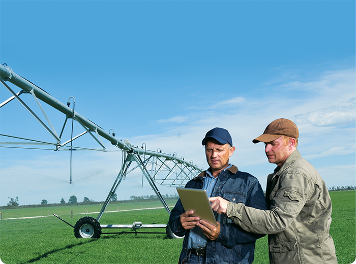 Selling precision irrigation service and data management packages are an entry point for dealers, who may not necessarily want to sell center pivot systems. (Photo courtesy of Trimble)