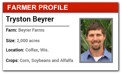 Tryston Beyrer works with his father, Bill, and brother, Jeco, on their 2,000 acre dairy farm near Colfax, Wis. Tryston leads a double life — farming, while also working on his PhD at the University of Illinois, researching innovative ways to band fertilizer for best placement and yield response.