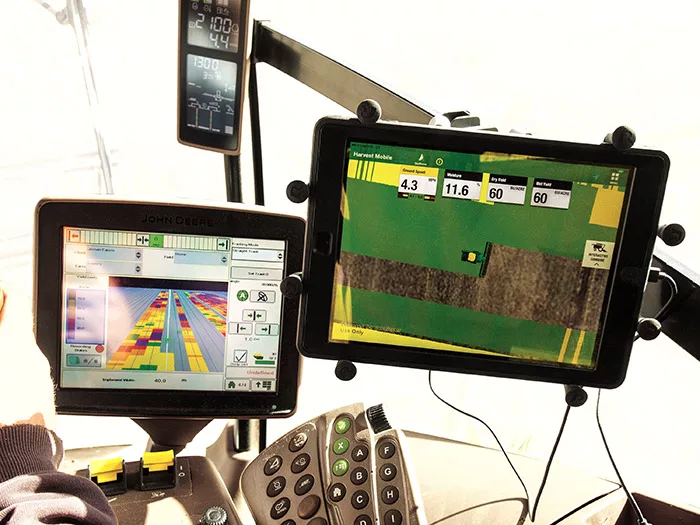 ABOVE: Harvest Mobile features data collection and transfer to help operators make timely decisions with harvest information. Photo courtesy of John Deere