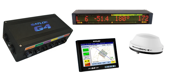 The Satloc G4 system includes a 9-inch touch screen, CPU, A21 antenna and external CAN lightbar.