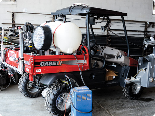 The UTV features a Case IH display, Capstan Ag’s PinPoint application system, Raven CANBUS nodes and telematics capabilities and is designed to replicate the functionality of a 90 foot sprayer.