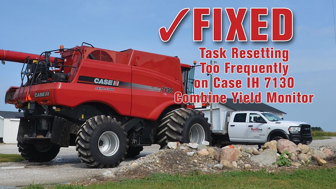 Calvin Knotts, precision farming specialist at Redline Equipment, diagnoses and fixes a Case IH 7130 combine that kept resetting and creating a new task in the yield monitor after every 10 acres during harvest. The fix involved deleting the old harvesting task and installing a software update for the Case IH Pro 700 display.