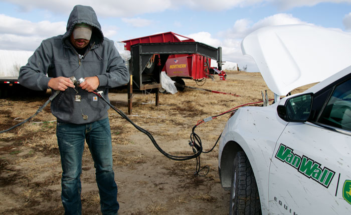 Eric says he tries to talk to all of the salespeople, the parts and service department, and Van Wall’s agronomist every time he’s working from the Story City and Nevada stores. He tells them about conversations he’s had with his customers, some of which are totally unrelated to precision. Eric recalls a customer who asked him, “the GPS guy,” for tire recommendations.