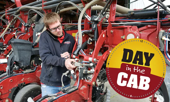 Early on in my Day in the Cab visit with Pete Kopriva, precision farming specialist at Case IH dealer J.J. Nichting, he said the amount of phone calls he was getting had “really died down” since the previous week. Planting was well underway in the West Liberty, Iowa, area, and farmers had their monitors figured out by this point.