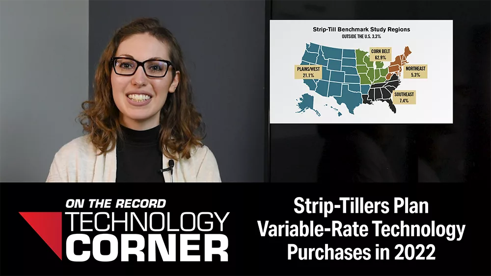 Variable-rate seeding (VRS) and variable-rate fertilizer application (VRA) technologies are higher on strip-tillers’ purchase wish lists. About 56% bought or planned to buy VRA products in 2022, and 50% bought or planned to buy VRS technology this year.