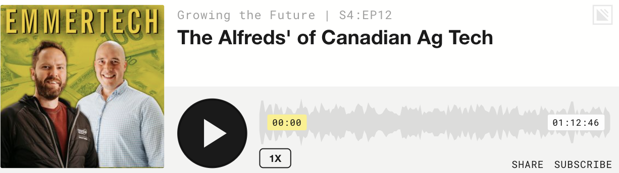 If you’re interested in a peek behind the curtain of venture capital investments, you’ll want to listen to this entire episode of the Growing the Future podcast, but we’re particularly interested in venture capital firm Emmertech’s investments and companies to watch. Starting around 51:00 in the episode, Sean O’Conner and Kyle Scott of Emmertech explain why they’re watching Lucent BioSciences, a company that creates carbon-neutral and non-polluting fertilizers, TechBrew Robotics, which created a mushroom-picking robot, among other agtech startups.