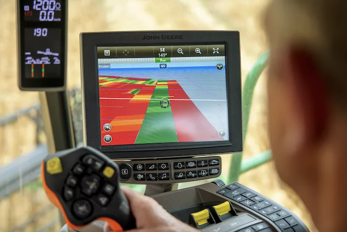 John Deere is now offering HarvestLab™ 3000 Grain Sensing on 2018 or newer John Deere S700 Series Combines. Grain Sensing continuously measures and monitors protein, starch and oil values in wheat, barley or canola in real time as the combine is harvesting. This site-specific data can then be viewed in the combine, or in the John Deere Operations Center™.