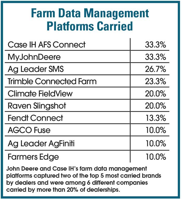 For the second year in a row, over 50% of dealers surveyed are actively selling data management services/packages supported by precision specialists.