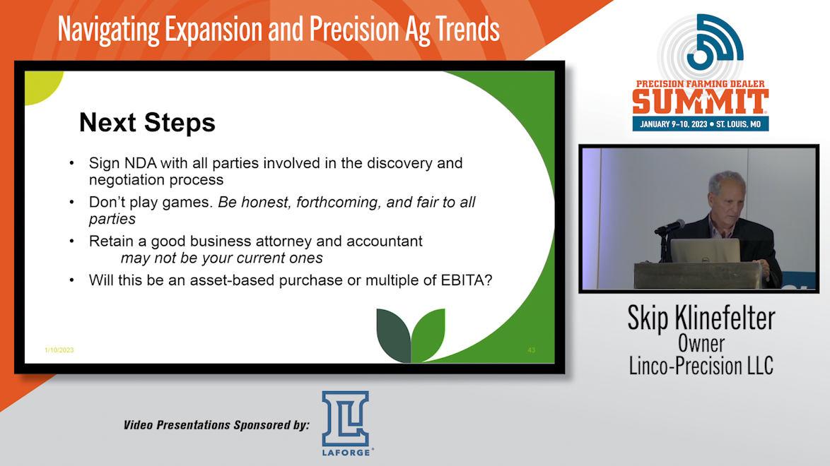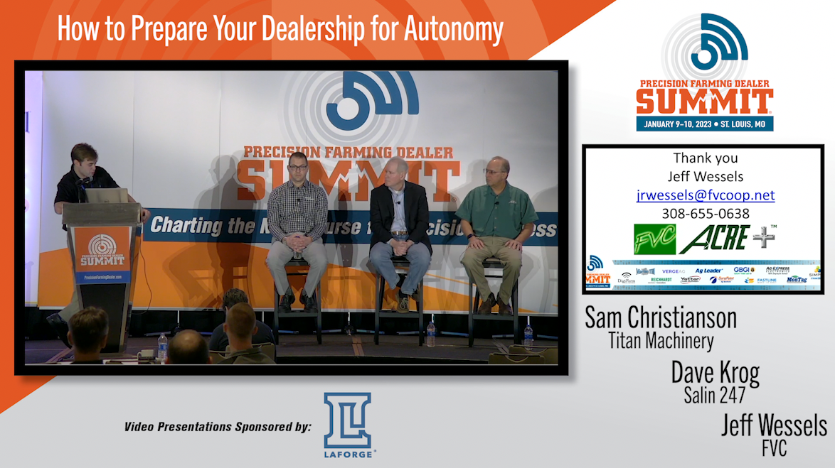Relive the "best of the best" ideas from the Precision Farming Dealer Summit through replays of the 2023 conference general session speaker presentations, made possible with the support of Laforge Systems.