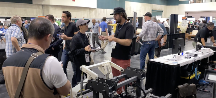Attendees got to see first-hand how machinery giants are merging heavy metal with technology. In one demonstration, an excavator 1,600 miles (2,580 km) away at one of Caterpillar's Illinois plants was operated by someone using a remote operator station and joysticks.
