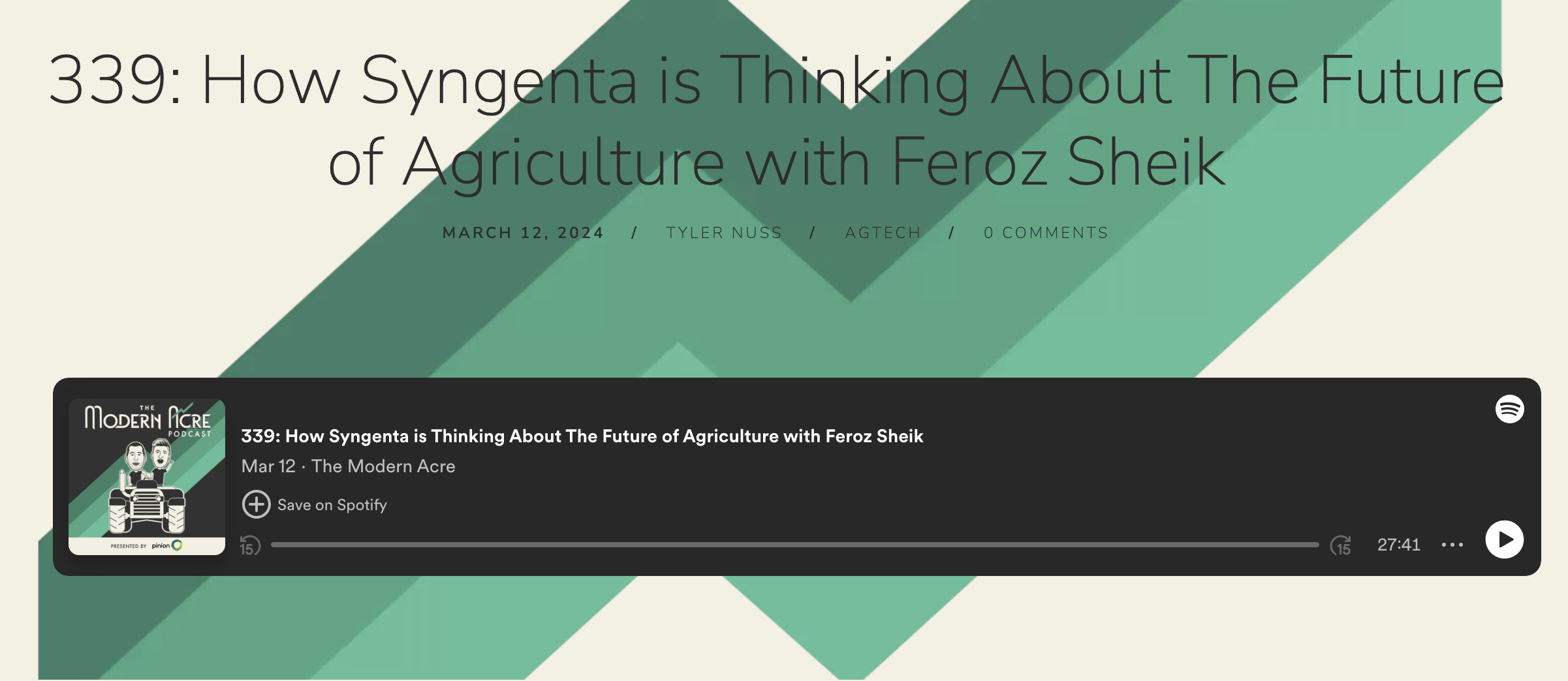 Looking for something to listen to during your commute this week? Check out this episode of the Modern Acre podcast featuring an interview with Feroz Sheikh, chief information and digital officer at Syngenta Group.