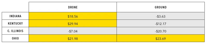 Fungicides applied to corn with a DJIT40 drone delivered a higher ROI on average than fungicides applied on the ground according to a 2023 Beck's Practical Farm Research (PFR) study. Beck's researchers note that a few key factors were at play during the first-year study.