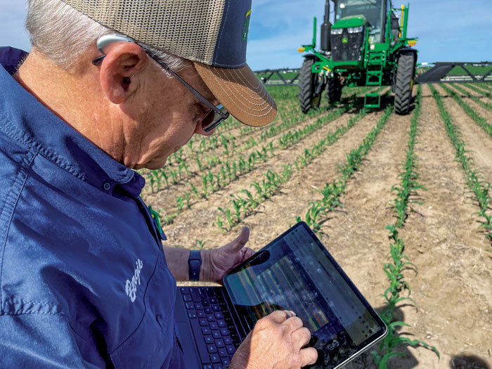 Berggren pulls up data from a John Deere See & Spray trial at the Flickner Innovation Farm. Berggren says the technology is becoming more widespread, with nearly 50 active See & Spray systems in his coverage area. Noah Newman