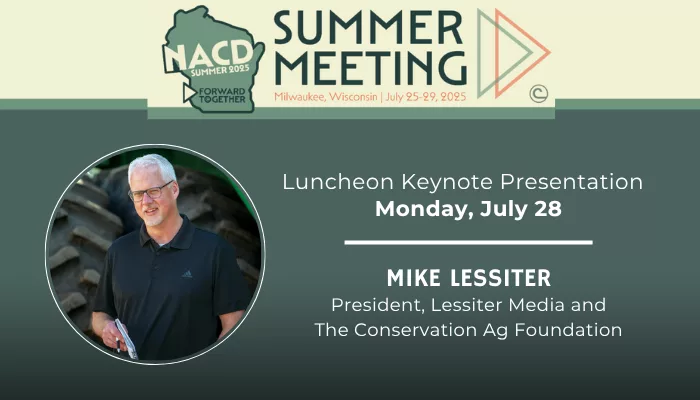 The Luncheon will feature keynote speaker Mike Lessiter, President of Lessiter Media, an ag media company whose brands are recognized as a trusted source for conservation districts and the producers they serve. Mike will speak Monday, July 28, on the key elements of no-till history and why it’s a blueprint for future change. He will also examine critical success factors needed to sustain and grow the practices, and the key role of conservation districts in making successful transitions and adoption a reality.