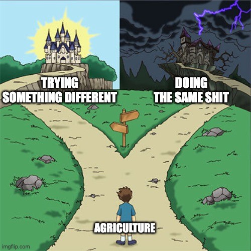 OK, back to the main point. Some dealers might be facing a similar crossroads right now, as Faleide points out (and illustrates in the meme below) — stay on the same path or take a hard turn into the unknown, which might be less scary than it sounds.