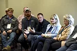 Ben Flansburg from John Deere dealer LandPro Equipment, Mason Gukenberger from New Holland dealer Swiderski Equipment and Pete Youngblut from Kinze dealer Youngblut Ag explore strategies for driving customer engagement through clinics and demo days.